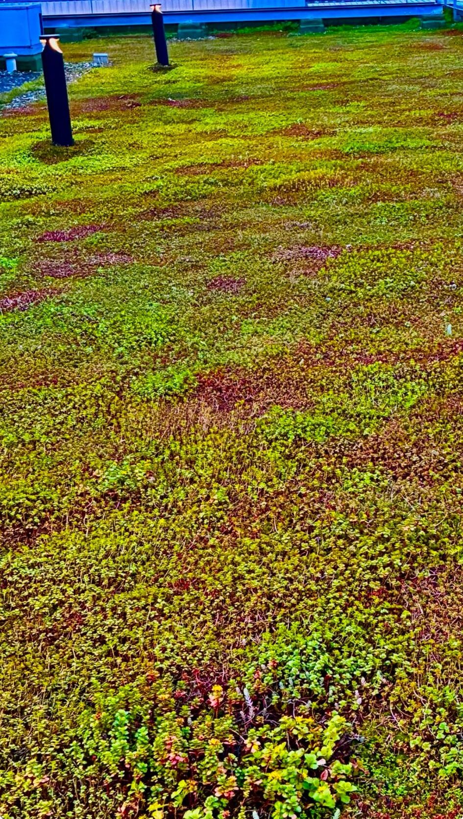 Crucially, the strengthened sward has naturally suppressed moss and unwanted weeds, achieving an estimated 70–80% reduction through competition alone. This approach avoids aggressive intervention and supports the long-term integrity of the green roof build-up.